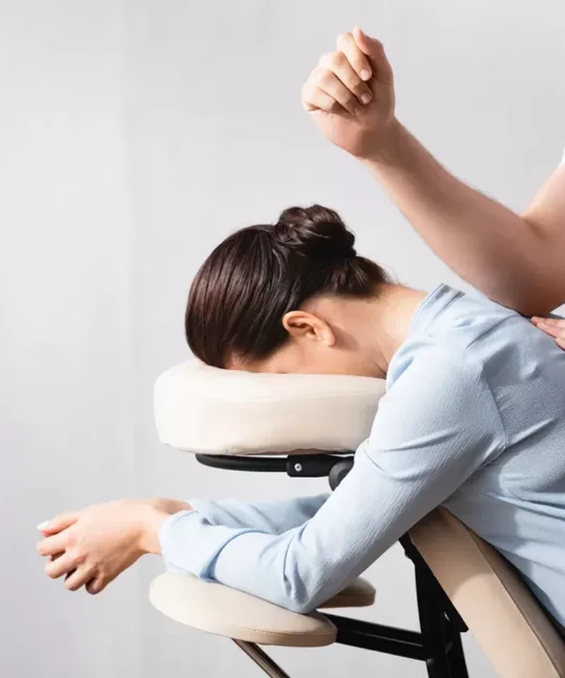 Le massage Amma-assis est une technique de massage conçue pour offrir relaxation et bien-être en un temps court. Réalisé sur une chaise ergonomique spécialement conçue, le receveur reste habillé, facilitant l'accès rapide et pratique.
